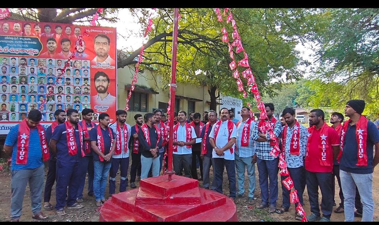 భారతదేశంలోని తొలి కార్మిక సంఘంగా 1920 అక్టోబర్ 31వ తేదీన ముంబైలో లాలా లజపతిరాయ్ గారి అధ్యక్షతన ఆల్ ఇండియా ట్రేడ్ యూనియన్ కాంగ్రెస్ (ఏఐటీయూసీ) ఆవిర్భవించింది. ఈ చారిత్రక సమావేశంలో జవహర్లాల్ నెహ్రూ, నేతాజీ సుభాష్ చంద్రబోస్, వివి గిరి, సరోజినీ నాయుడు, చిత్తరంజన్ దాస్ వంటి మహానేతలు పాల్గొన్నారు. దేశవ్యాప్తంగా 64 సంఘాలకు చెందిన 101 మంది ప్రతినిధులు హాజరై 1,40,854 మంది సభ్యుల ప్రాతినిధ్యం వహించారు.రెండవ మహాసభలో ఏఐటీయూసీ బ్రిటిష్ పాలన నుండి సంపూర్ణ స్వాతంత్ర్యాన్ని సాధించాలని తీర్మానం చేసింది. భారత స్వాతంత్ర్య సంగ్రామంలో పాల్గొన్న ఏకైక కార్మిక సంఘం ఏఐటీయూసీగా నిలిచింది. కార్మికులు, రైతుల హక్కుల కోసం అనేక పోరాటాలు చేసి, ప్రభుత్వ రంగ పరిశ్రమల స్థాపనలో కీలక పాత్ర పోషించింది.ఏఐటీయూసీ అనుబంధంగా కామ్రేడ్ దేవురి శేషగిరిరావు గారి అధ్యక్షతన సింగరేణి కాలరీస్ వర్కర్స్ యూనియన్ ఏర్పడింది. అనేకమంది అమరుల త్యాగాలతో కార్మికుల కోసం పలు హక్కులను సాధించింది.ప్రైవేట్ కాంట్రాక్టర్ల ఆధీనంలో నడిచిన సింగరేణిని ప్రభుత్వ రంగ సంస్థగా మార్చడంలో ఈ యూనియన్ కీలకపాత్ర పోషించింది. వేతన సవరణలు, వేజ్ బోర్డు, 44 కార్మిక చట్టాలు, 8 గంటల పని విధానం, దీపావళి బోనస్, లాభాల వాటా, పెన్షన్ వంటి హక్కులు సాధించడం ఏఐటీయూసీ సాధించిన విశిష్ట విజయాలు.ప్రస్తుతం కేంద్ర ప్రభుత్వం ఈ 44 కార్మిక చట్టాలను నాలుగు కోడులుగా మార్చి, స్వాతంత్ర్యానికి ముందు ఉన్న వెట్టి చాకిరి విధానాన్ని తిరిగి ప్రవేశపెట్టే ప్రయత్నం చేస్తోందని ఆర్జీ–2 బ్రాంచ్ కార్యదర్శి జిగురు రవీందర్ గారు విమర్శించారు. కార్మిక వర్గం ఏకతా సాధించి ఈ విధానాలకు వ్యతిరేకంగా పోరాటం చేయాలని ఆయన పిలుపునిచ్చారు.ఈ సందర్భంగా ఆర్జీ–2 ఏరియాలోని అన్ని గనులు, ఓసీలు, విభాగాలలో ఏఐటీయూసీ జెండాను ఆవిష్కరించి వేడుకలు ఘనంగా నిర్వహించారు.ఈ కార్యక్రమంలో సెంట్రల్ వైస్ ప్రెసిడెంట్ ప్రకాశ్, సెంట్రల్ ఆర్గనైజింగ్ సెక్రటరీ కందుకూరి రాజరత్నం, బ్రాంచ్ సహాయ కార్యదర్శులు శ్యాంసన్, గంధం సాంబశివరావు, వైస్ ప్రెసిడెంట్ అన్నారావు, బ్రాంచ్ నాయకులు రవికుమార్, మహేందర్, సంపత్, పిట్ కార్యదర్శులు శంకర్, మహేందర్, రాజు, రాజిరెడ్డి, తాళ్లపల్లి నారాయణ, చిట్టంపల్లి మహేందర్, కుమారస్వామి, రాజసాగర్, లచ్చన్న, నాగుల శ్రీనివాస్ తదితర నాయకులు, యూనియన్ డెలిగేట్లు, కార్యకర్తలు అధిక సంఖ్యలో పాల్గొన్నారు.ఎర్రజెండా ఎగురుతోందంతవరకు — కార్మిక హక్కులు బతికే ఉంటాయి