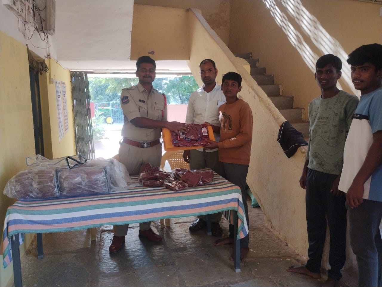 scdbh పుల్కల్ నందు ప్రభుత్వం నుండి వచ్చిన ఉన్ని క్యాపులను అందించిన పుల్కల్ ఎస్ ఐ వీశ్వజన్